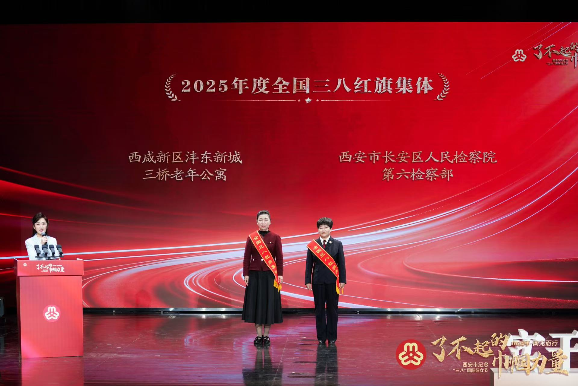 3月6日,西安市纪念“三八”国际妇女节116周年大会隆重举行。长安区妇联带领全区优秀妇女代表与各界巾帼齐聚一堂,共襄盛会。大会以“了不起的巾帼力量·向光而行”为主题,通过“巾帼薪序”“巾帼守望”“巾帼智创”三个篇章,生动展现了新时代西安女性在基层治理、法治建设、科技创新等领域的坚守与担当。
