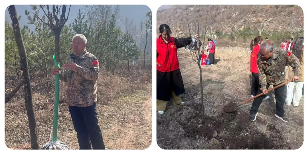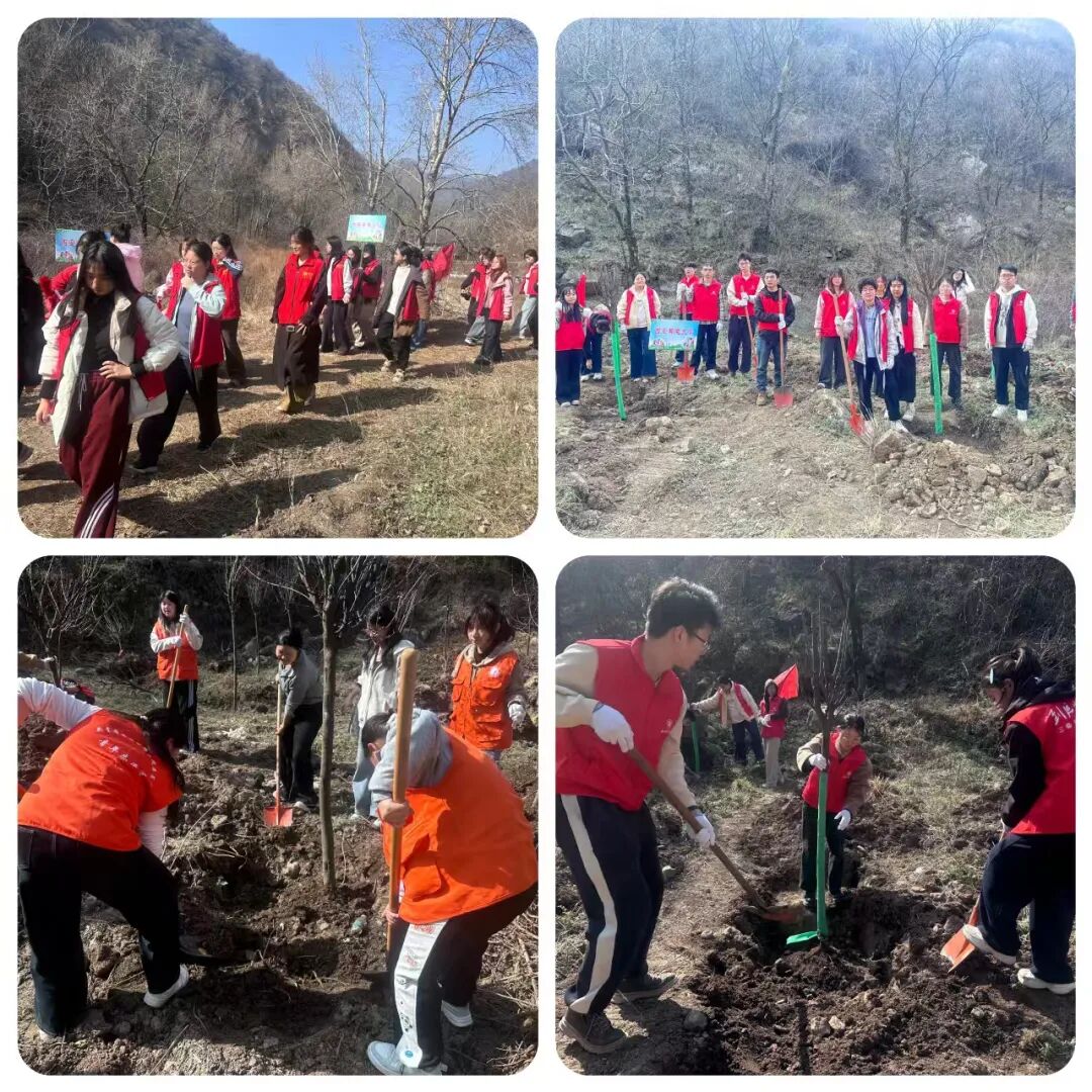 活动开始,大家有序领取铁锹、水桶等工具,奔赴植树区域,一场热火朝天的植树行动就此展开。大学生们力气十足,挥锹挖坑、铲土培实,动作干脆利落;小学生们小心翼翼扶正树苗,用小手压紧根部泥土,认真守护每一株新苗;青年人才与共青团员们主动示范,耐心指导小朋友们植树技巧;老师们和妇女代表们提着水桶,为刚栽好的树苗浇下定根水,处处是忙碌而温馨的身影,构成一幅生动的生态共建画卷。铁锹挥舞间,汗水洒落泥土,一棵棵树苗在春风中昂然挺立,为春日的青山增添了片片新绿,也种下了守护生态的美好希望。